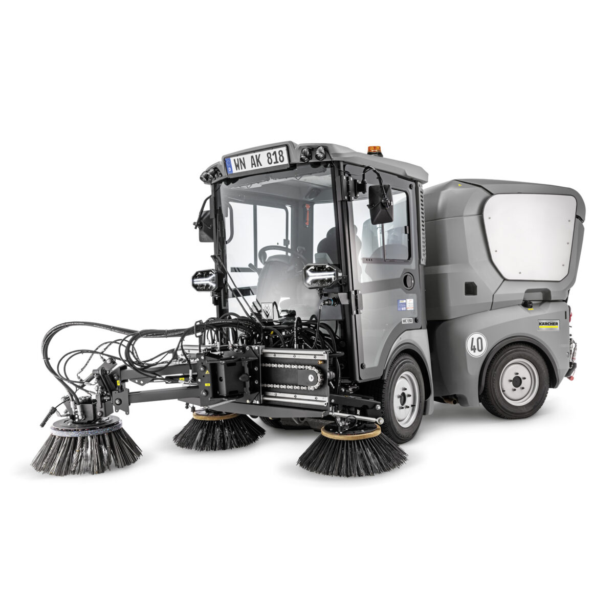 Maskinen leverer et eksepsjonelt rengjøringsresultat,og har en transporthastighet på 40 km/t. Designet på førerhuset gir maksimalt utsyn og god oversikt over arbeidsområdet, slik at føreren kan gjøre jobben nøyaktig og effektivt.
